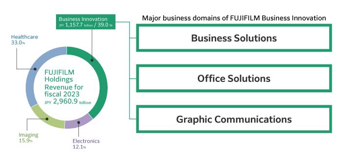 根据2023年的财务报告,富士的主要业务分为医疗卫生、电子材料、图像和商业创新四个部分。