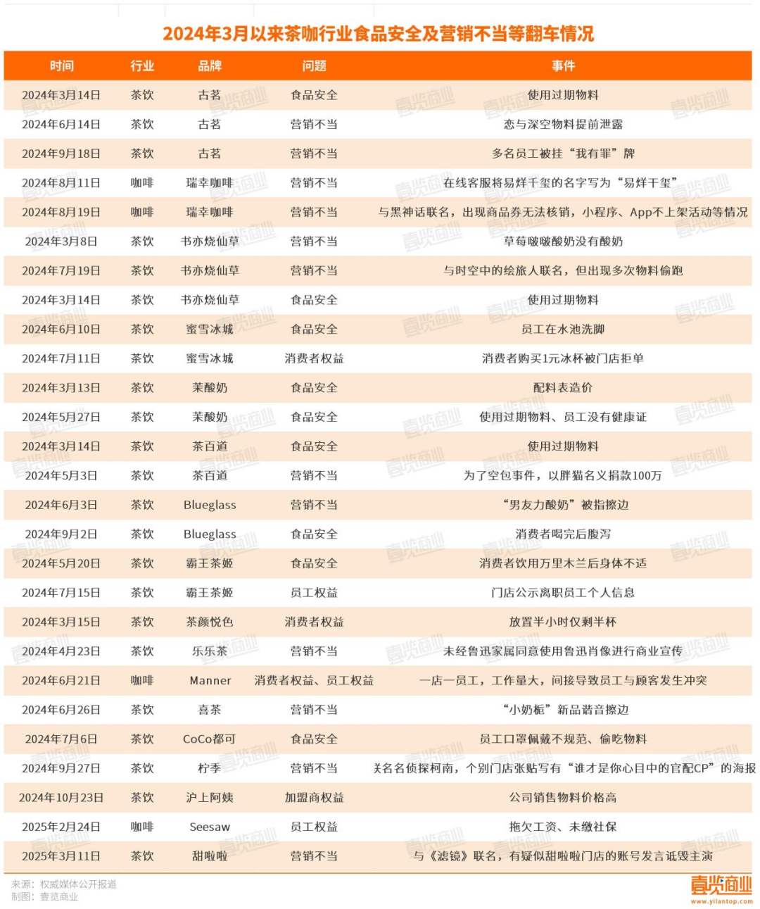 在过去的一年里,17个茶咖品牌被翻车27次。