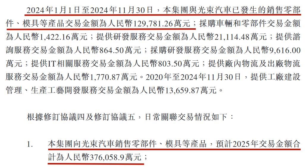 公告显示,去年前11个月,长城与光束之间的零部件、模具等产品交易总额为12.98亿元。而且今年,这个销售数字有望大幅上升,达到37.6亿元。