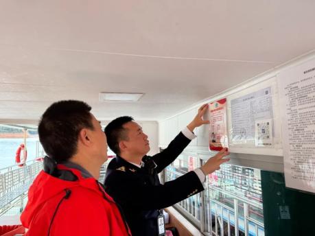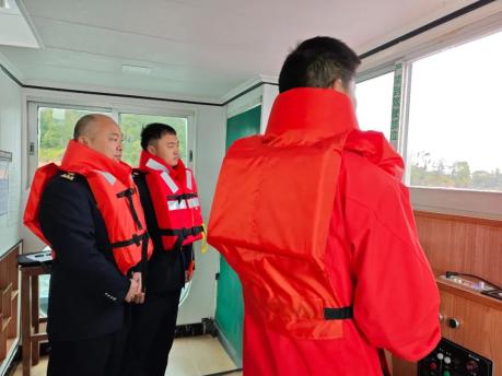 河源海事局全面推行穿救生衣上船工作,督促航运企业在穿救生衣阶段前置化,安排安全员讲解并逐一检查。在随船过程中,海事执法人员普及了乘船安全知识,如穿救生衣,促进了“穿救生衣,接受安全教育,带动全社会”的良好效果。