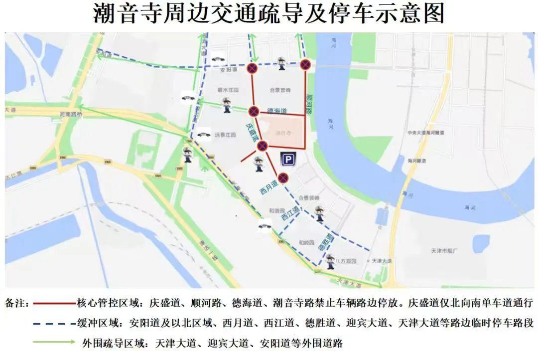 为确保2025年“潮音寺农历二月十九观音庙会”期间的道路交通安全,市公安局滨海新区分局交管支队将于3月16日(本周日)至3月19日(下周三)对潮音寺周边道路实行临时交通管制。