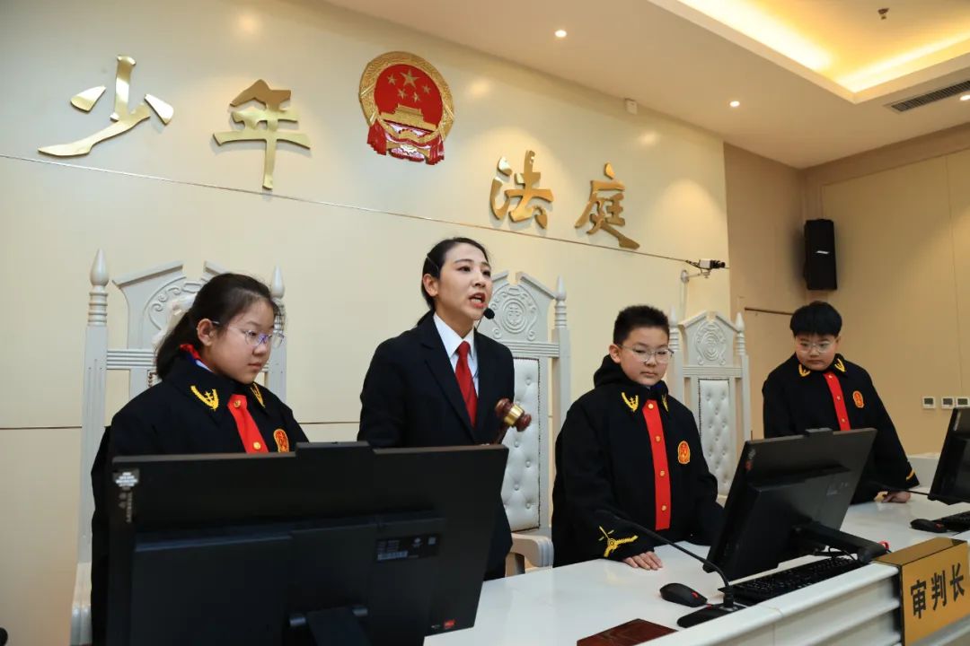 在少年法庭上,学生们穿上长袍,体验“小法官”的作用,感受法庭的庄严。评论员还阐述了法院准备、法院调查、法院辩论、法院教育等审判环节,让学生直观了解法院审判的流程。