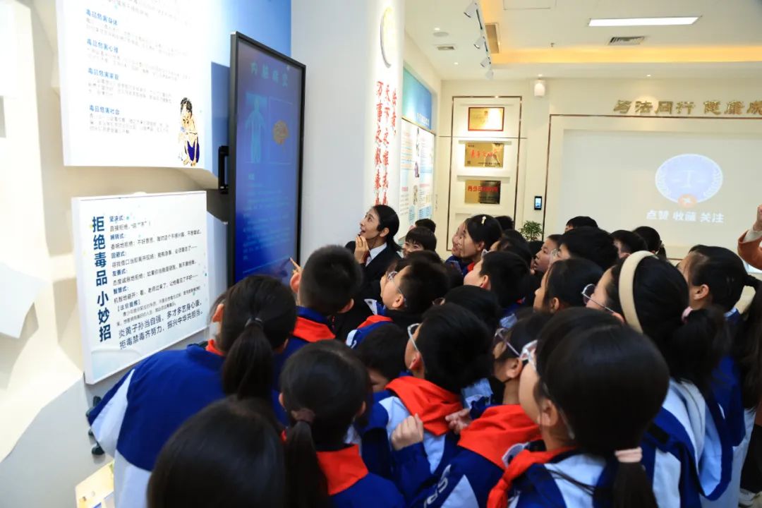 接着,老师和学生走了进来 法律保护未来” 青少年保护基地。互动环节在这里非常热闹。工作人员抛出了关于校园欺凌的例子,瞬间点燃了学生们的热情。"老师,我觉得这种故意伤害学生的行为太糟糕了,绝对算是校园欺凌!” 一个扎着马尾辫的小姑娘迅速举手,一脸严肃地大声说道。在游戏体验区,寻找青少年不良行为的小游戏被学生包围着。在尝试操作中,他们深刻体会到青少年不良行为背后隐藏的风险,在欢笑和讨论中轻松系统地学习法律知识。