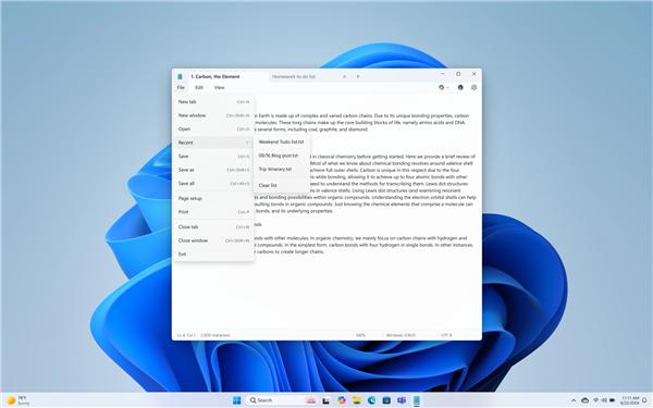 除了 AI 除了文本摘要功能外,记事本还增加了“最近文件”菜单,用户可以通过文件菜单快速访问最近关闭的文件,如果不想保留历史记录,用户也可以在设置中关闭这个功能。