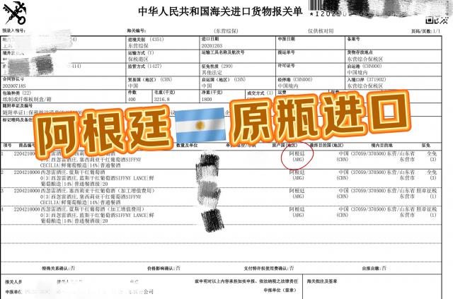 实打实的进口阿根廷原瓶,直接放入进口报关单▼