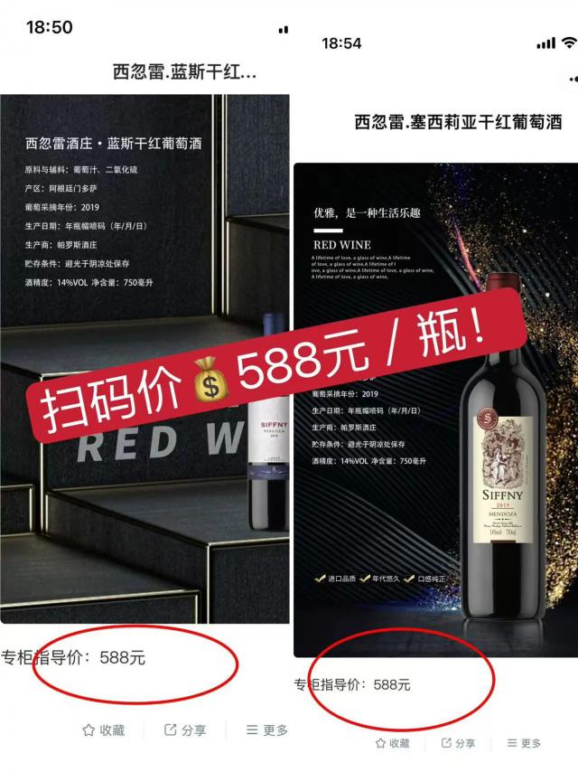 单瓶扫码价 588 一瓶元,对得起它的品质。