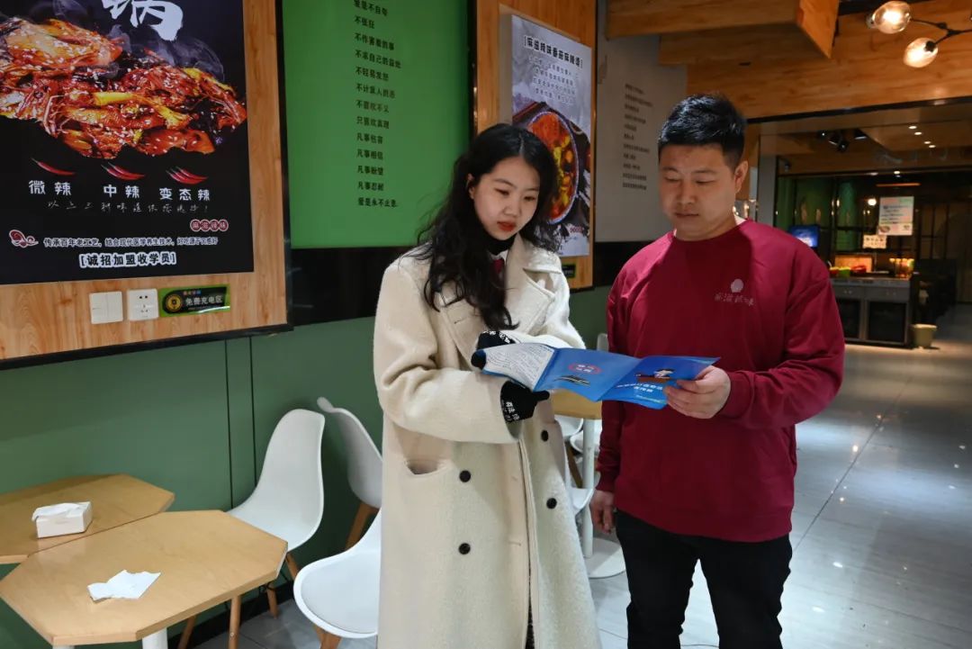 随后,警察一行带着宣传手册走进周边商家,对商家进行“一对一”的普及,通过真实案例讲解消费者权益保护的重要性,引导商家以诚信为本,保证产品质量和服务态度,共同保持健康、有序、公平、公正的市场环境。