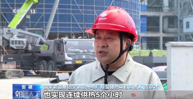 国家能源集团安徽宿州电厂熔盐储热相关负责人 乔廷才:本项目建成后,我厂可实现机组全负荷持续供暖。 4 一小时,深度调峰 30% 在额定负荷下实现持续供暖 5 小时,同时对外供热能力达到 410 吨 / 与以前相比,小时的加热能力有所提高。 260 吨 / 小时。