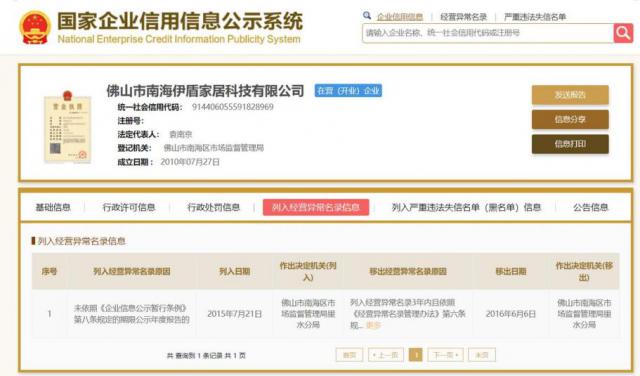 伊盾家改名后,近几年经营范围也发生了几次变化,经营范围也有所扩大,如住宅装修、货物进出口等。2015年我国企业信用信息公示系统披露 2015年,佛山市南海区市场监督管理局水分局将年度报告列入经营异常名单,因为伊盾门窗未能按规定期限公示。 年 7 月 21 日纳入,2016 年 6 月 6 日出,前后将近一年。
