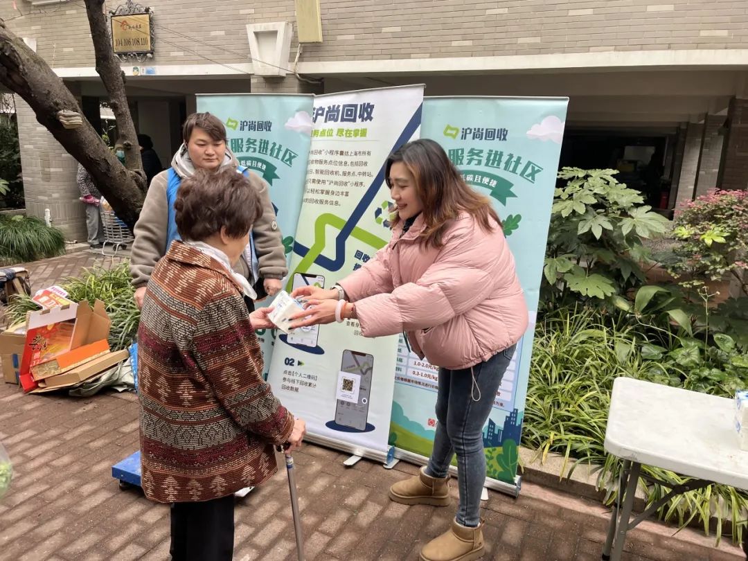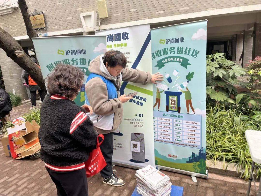 工作人员现场展示了如何利用“沪上回收”回收货物,阐述了平台的功能和优势,鼓励居民通过网上预约轻松实现可回收货物的上门收购服务。现场吸引了不少居民的积极参与,大家纷纷拿出家中的可回收物品,在工作人员的指导下完成了回收过程。现场气氛热烈,居民在收获实用礼品的同时,对环保回收的新方式有了更深入的了解。