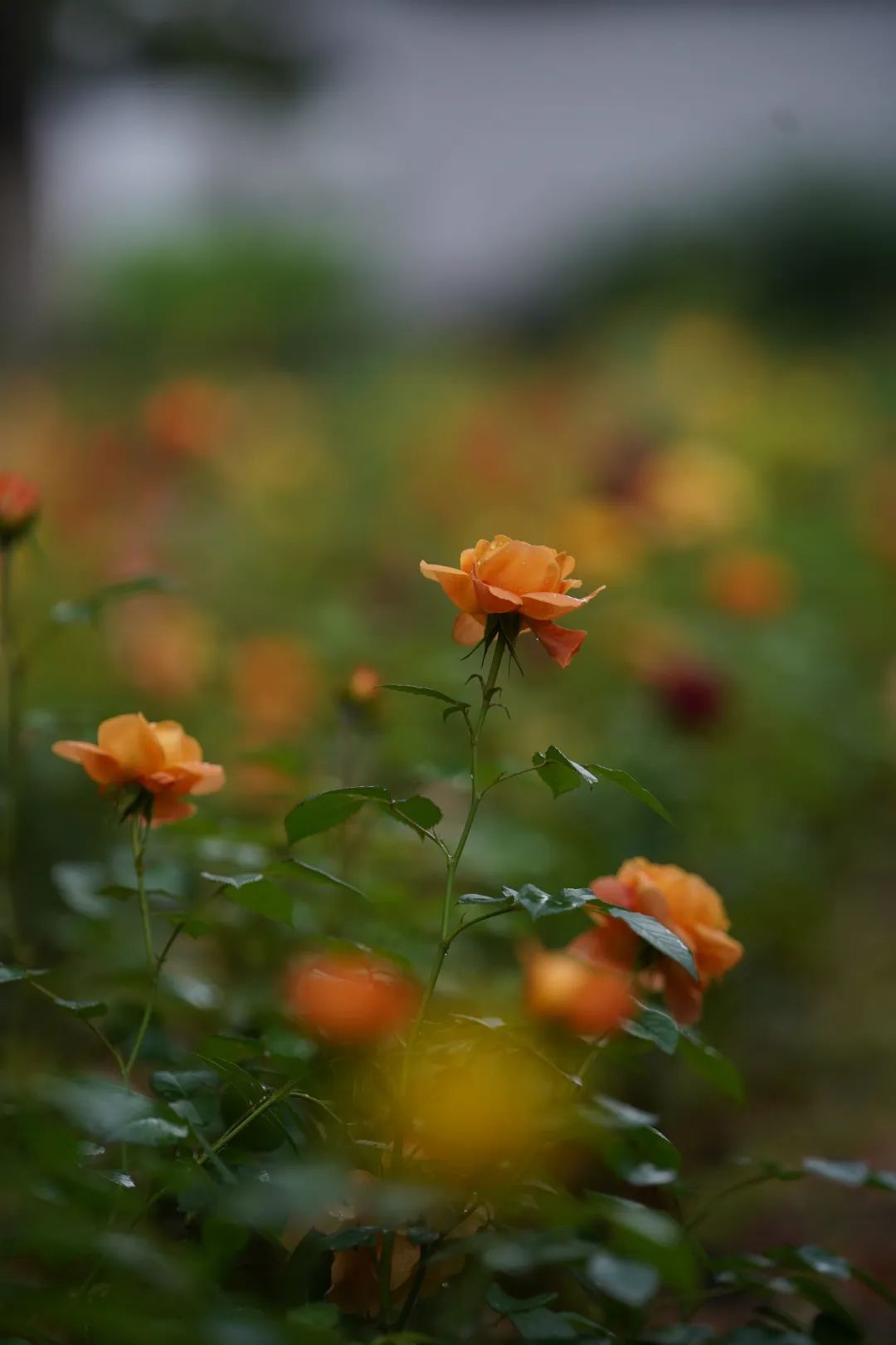 雨后的珠溪园被灰色的蓝色包围着,青灰下摇曳着一丝俏皮的艳丽,浓郁的黑云阻挡不了花朵带来的绚丽。每一场雨,每一朵花,都是一场江南盛会。在细雨的轻拂下,我读了你几千遍,婉转地看着你。