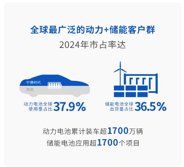 宁德时代:2024 全球动力电池使用量每年占动力电池的比例 37.9%