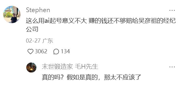 还有网友质疑镜头中的彦祖是AI生成的,指出了法律风险,并热情提醒: