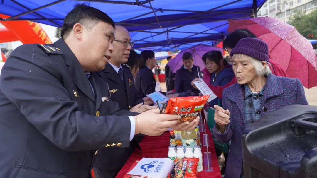 "这种方便面包装类似,但是出厂日期字体模糊,大家买的时候一定要擦亮眼睛。“现场,县市场监督管理局设立的“实物展示台”成为焦点。检查人员将查获的过期食品、标签不全的预包装商品、假冒伪劣日用品一一展示,并通过对比讲解、扫码演示、口味识别等方式教大众识别陷阱。工作人员还穿着民族服饰,将《消费者权益保护法》用悠扬的旋律和通俗的方言保护。、识假辨劣技巧等知识编成朗朗上口的歌词,吸引过去的人驻足聆听。