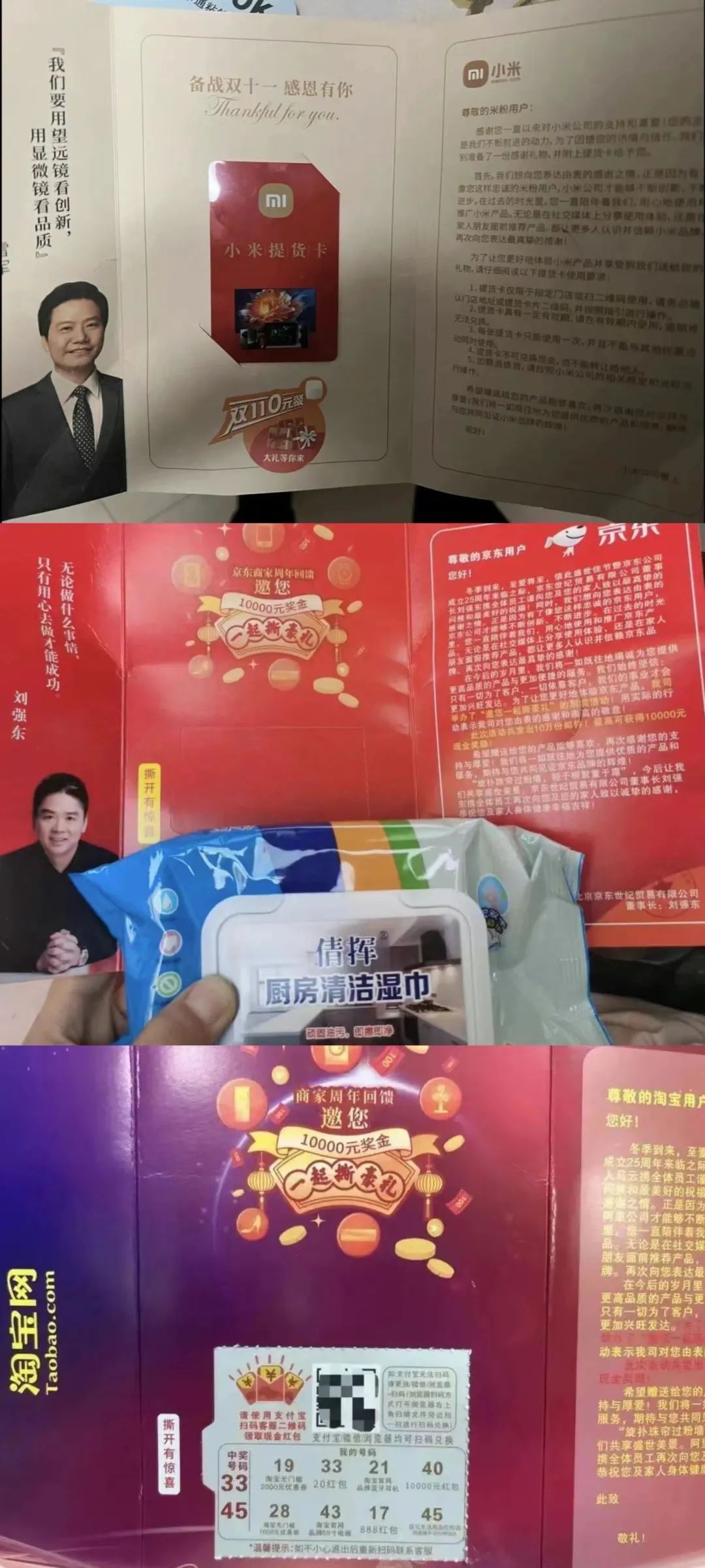 近日,聊城市东昌府区出现多名居民收到一张来历不明的快递卡,其中包括“淘宝”、“京东”、各种企业卡片,如“小米”,表示可以刮奖兑换礼品,这是真的吗?