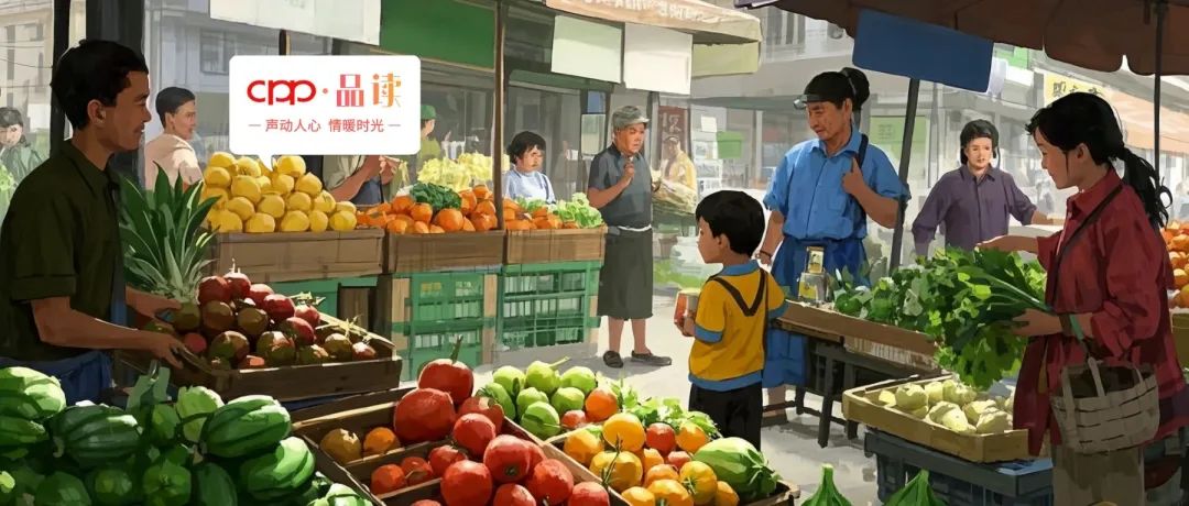 各种新鲜的当季蔬菜和水果,活泼的鱼、虾、蟹,香气扑鼻的熟食,伴随着商家一个接一个的叫卖声,顾客的讨价还价声,孩子们的玩耍声...一对老年夫妇互相帮助,在一个摊位前停下来,认真选择水果和蔬菜,一捆蔬菜,几个青椒,一袋西红柿,付钱拿菜,然后携手离开菜市场...这些都构成了生动和谐的生活轴。