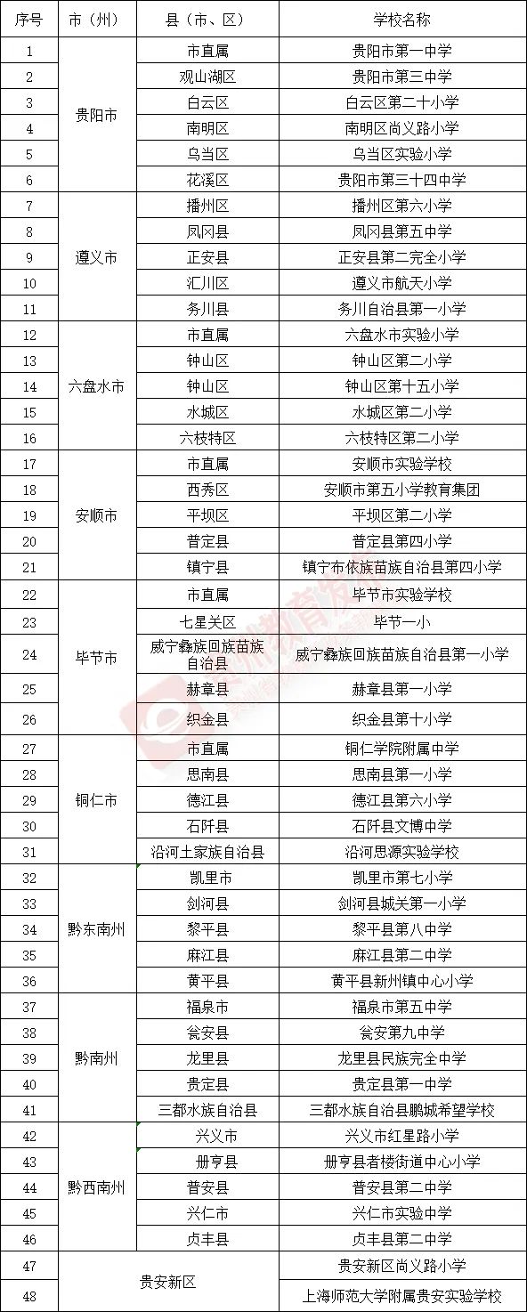 按照《省教育厅关于做好准备的事情》做好。〈全省中小学深入推进教育数字化转型试点工作方案〉通知(黔教函)〔2024〕53号)的工作要求,经当地申报和专家批准,拟确定遵义市广州区第六小学等48所学校为深入推进教育数字化转型试点区,包括贵阳市云岩区等10个县(市、区)。2025年3月14日至20日,现将试点区、学校名单公示。一起来看——