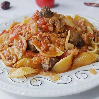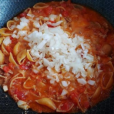 做好葱肉茄酱猫的耳朵,色香味浓郁。