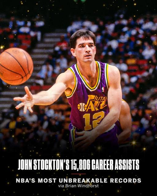 这个记录真的很难打破,因为如果你想帮助更多的球员,球员不仅要保持健康,还要有一个优秀的队友。斯托克顿职业生涯中的大部分助攻都是为了帮助卡尔马龙。