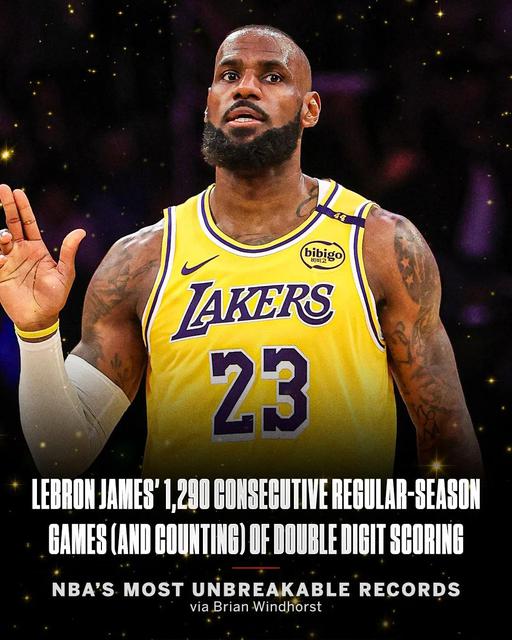 1. 詹姆斯勒布朗继续 1290 常规赛得分上双