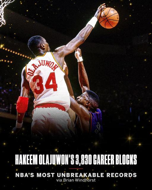 8. 职业生涯奥拉朱旺 3830 次盖帽