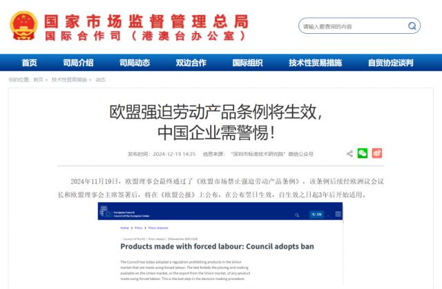去年年底,欧盟通过了《欧盟市场禁止强制劳动商品条例》。该条例宣布,2027年 年 12 月 13 从那以后,任何涉及“强迫劳动”的产品都将被禁止进入欧盟市场。