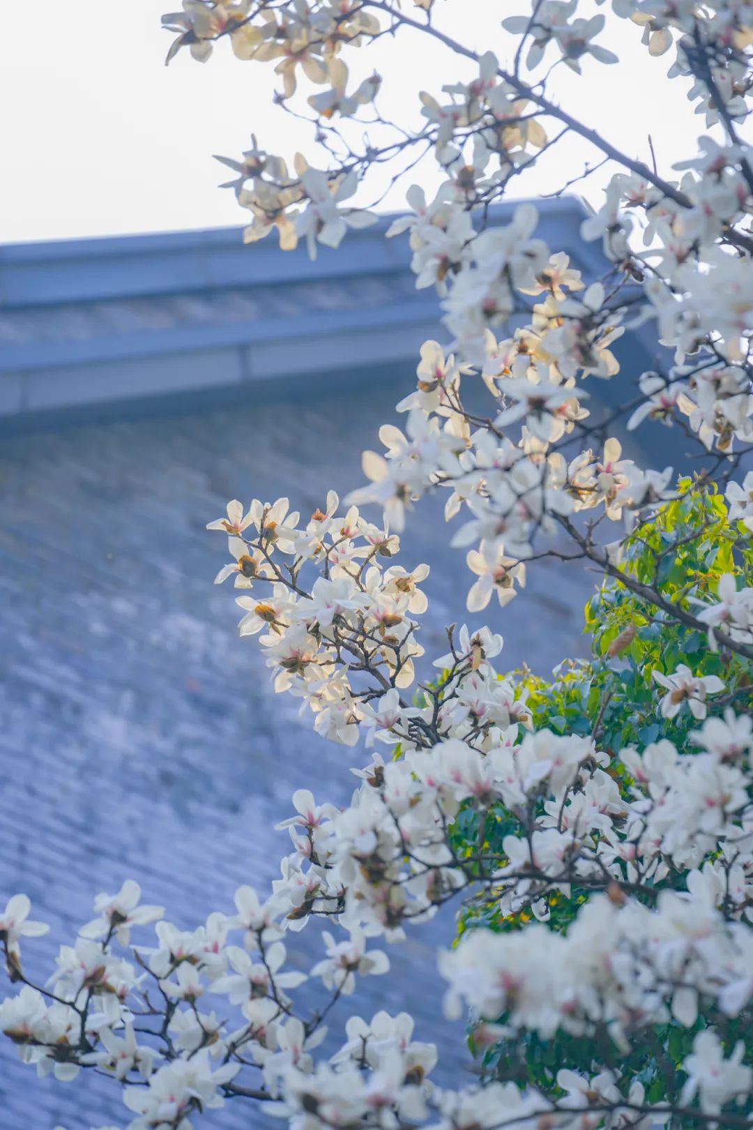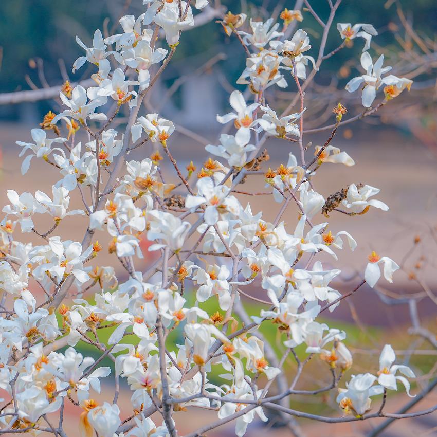 花苞饱满,挣脱萼衣束缚,如万千白鸽栖息在枝头。远远望去,似云霞栖树,近赏若良玉增辉。