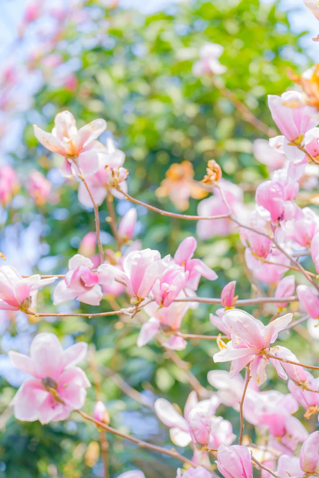 漫步于玉兰区,你可以看到不同形状的玉兰花。