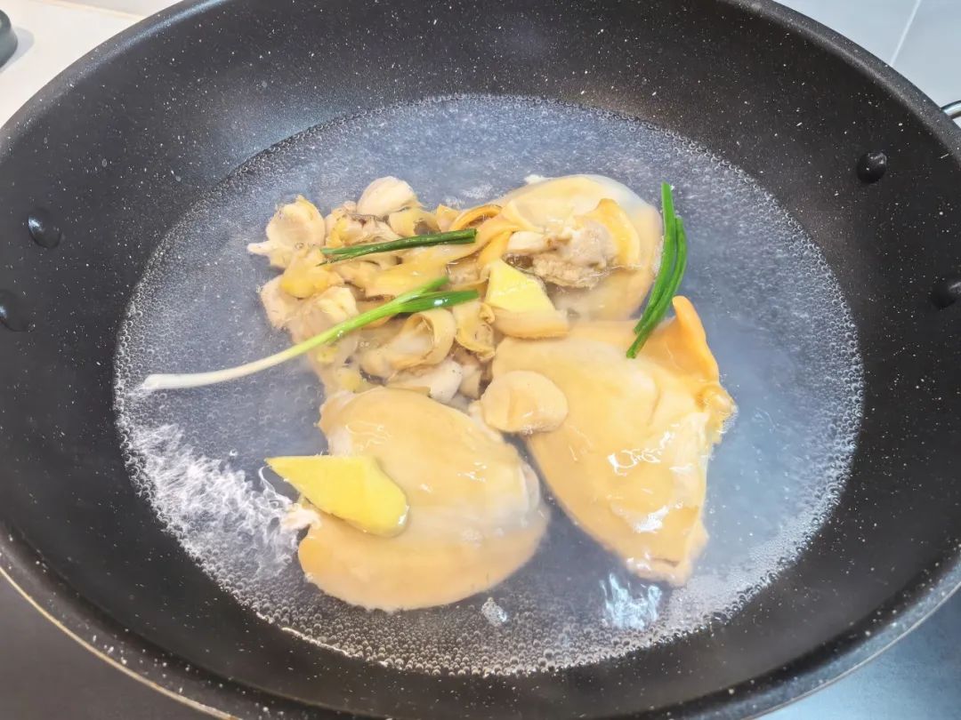 将蚌肉放入锅中,加入足够的开水,滚开后转小火慢炖半小时。