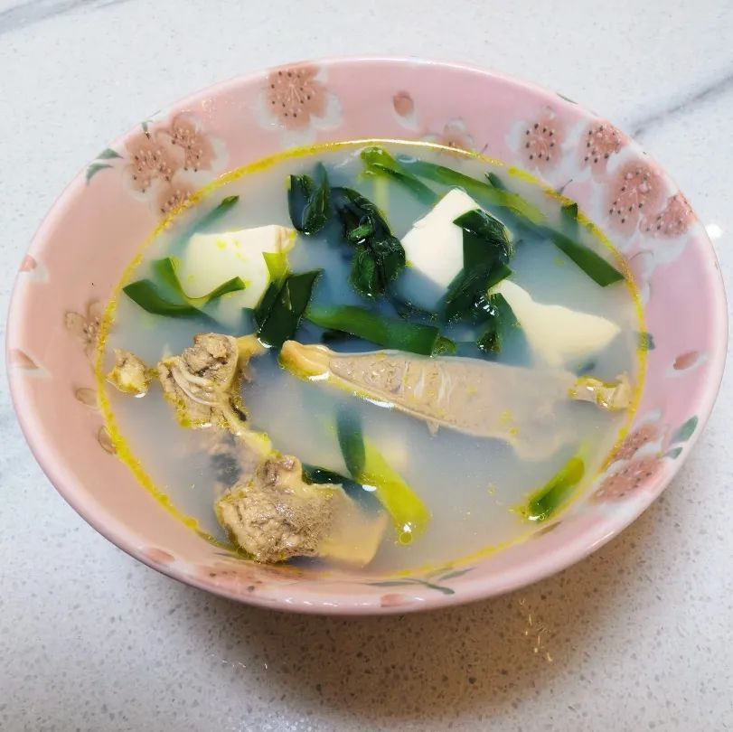 煮好的蚌肉韭菜豆腐锅,纯白一色,鲜白的汤,碧青的韭菜,棕色的蚌肉,粉嫩的豆腐,真好吃!
