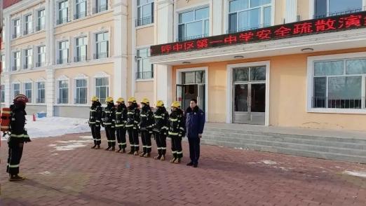 呼中区第一中学在模拟演练场景中“突发火灾”。学校反应敏感,立即启动早已制定的紧急消防预案。一方迅速向消防部门报警,接到紧急通知后,呼中大队迅速配备向阳路消防救援站应急力量赶赴现场。到达后,救援人员有序开展各项实战演练任务,如深入火灾现场侦察火灾、协助师生紧急疏散、使用专业工具进行救援拆除、开展火灾扑救等。,所有环节紧密相连,演练顺利完成。