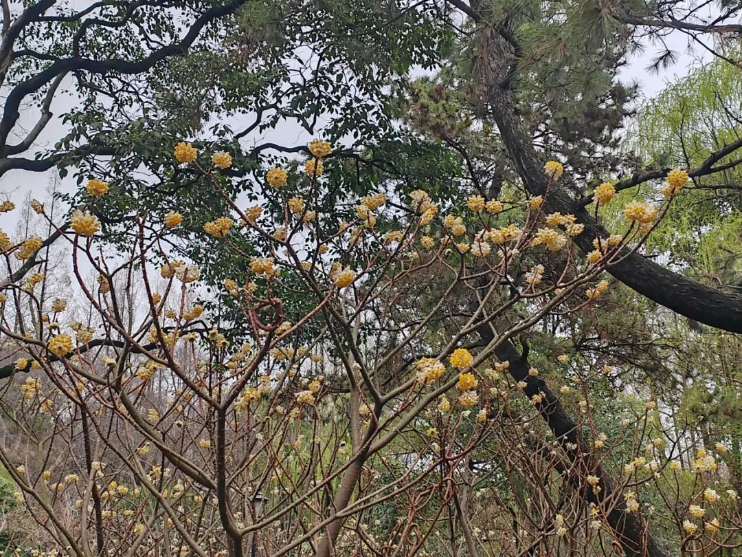 近来,结香花已经到了盛开的季节。在长宁的中山公园、外环生态绿道等绿地公园里,可以看到一片片结香的香味。