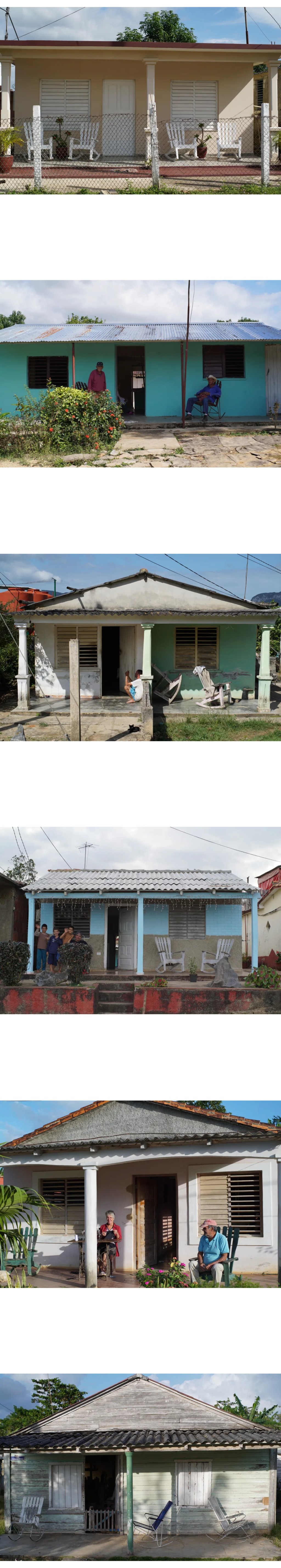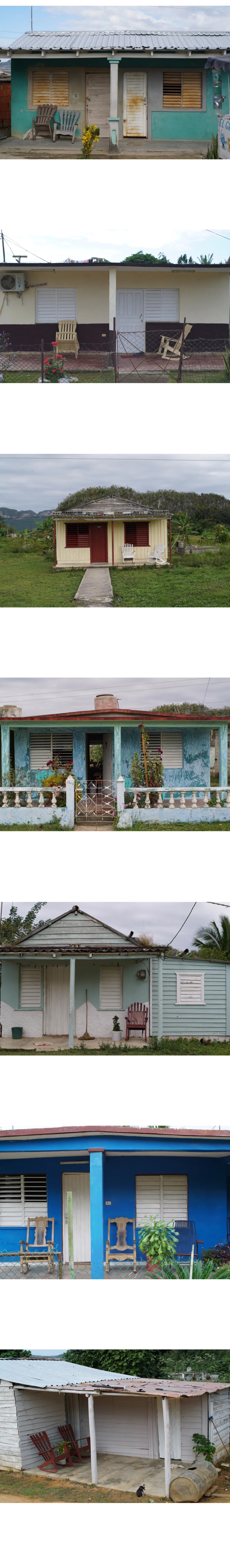 一排排五颜六色的房子矗立在峡谷里。每栋房子前面都有两把或四把不同颜色和设计的躺椅。当然,他们的房子里有更多这样的椅子。我完全被这些房子和椅子吸引住了,它们直接展现了大多数古巴人轻松悠闲的生活状态。坐在上面,摇摇晃晃,什么都不做。看山和云,一天就过去了。