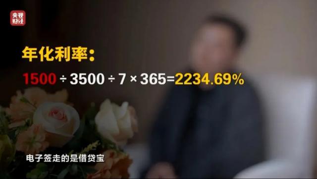 据央视 3·15 据晚会报道,电子借条基本不受借贷宝、人人信等电子签约平台的控制,利率可以高达 2234.69%。洪先生说,他向贷款人贷款 5000 人民币,其实只收到 3500 元转帐,可以平台借条上的贷款额度登记为 5000 元,短短 7 天空,要额外还清 1500 元利息。