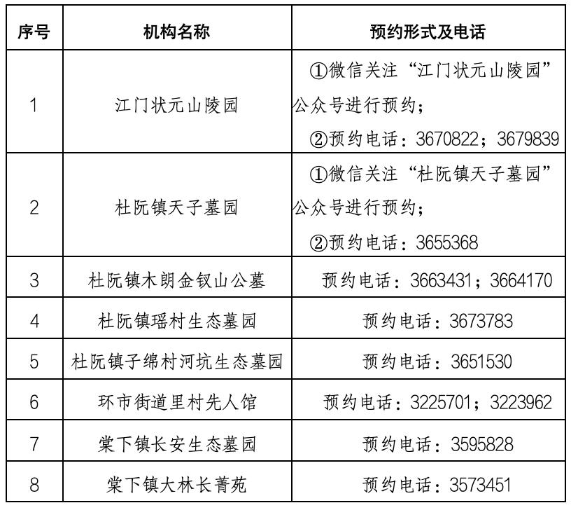 配件:2025年蓬江区主要扫墓场所清明期间扫墓预约形式及电话(以下)
