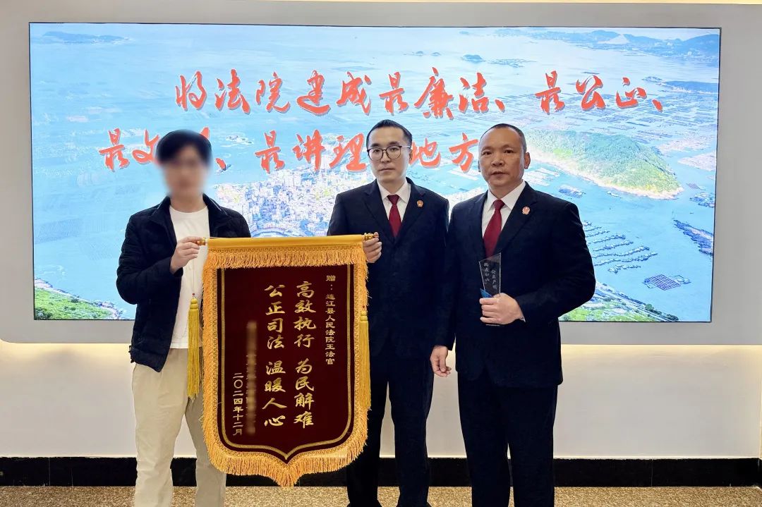 近日,方某某郑重将横幅交给执行法官,对执行法官始终坚持为人民服务、解决企业后顾之忧的理念表示感谢,充分肯定了连江法院优化经营环境、促进企业健康发展的扎实措施。