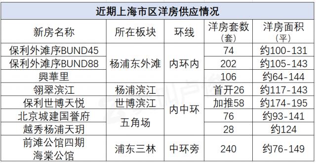 从世博滨江到杨浦东外滩、五角场,都集中在一波新盘上。