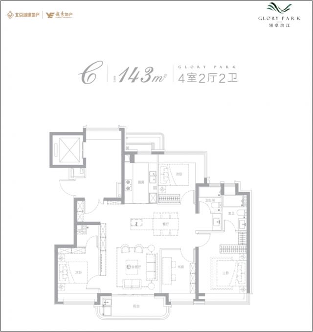 主要面积的房间类型 76 平两室到 144 平四房不等