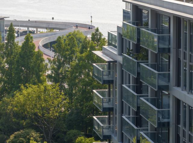 徐汇滨江小区就是一个典型的例子,第一排四层楼离黄浦江不到。 100 米饭,享受一线江景