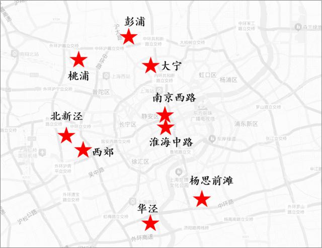 长宁西郊、北新泾、静安南京西路、彭浦、大宁、徐汇华泾、普陀桃浦、浦东杨思前滩等。
