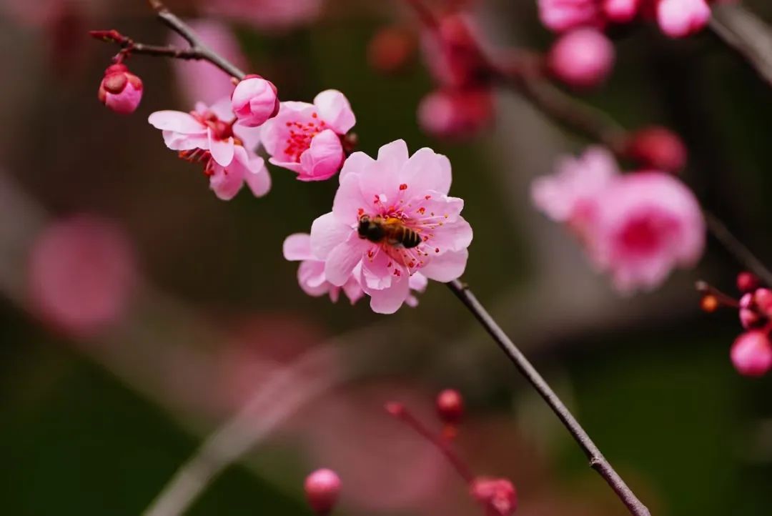 这不是桃花的奔跑,也不是梅花的回归,而是花中“混血儿”美人梅的专属浪漫!它是由双宫粉梅与红叶李杂交而成,既承受了梅的骄傲,又增添了李的娇艳。当一棵树开花时,它会占据春天的颜色。