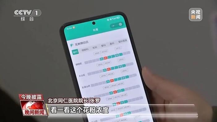 北京同仁医院院长 罗:现在我们已经有了一个覆盖全国的大气花粉浓度监测网络。每天出门前,如果花粉浓度很高,就要跟上相应的防护措施。比如这几天北京的柏科和杨柳科的花粉浓度比较高。如果这些花粉对患者过敏,就要尽量减少户外活动,尤其是这些过敏树木聚集的地方,尽量减少在这些环境中,防止急性过敏症状。