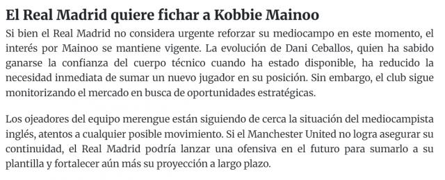根据西班牙「Fichajes 转会网」报道称,皇家马德里正高度关注曼联青训中场科比。 · 梅诺。「银河战舰」继续规划未来,尽管中场支援并非当务之急,但他们认为 19 年梅诺是一名有价值的年轻球员,潜力无限。