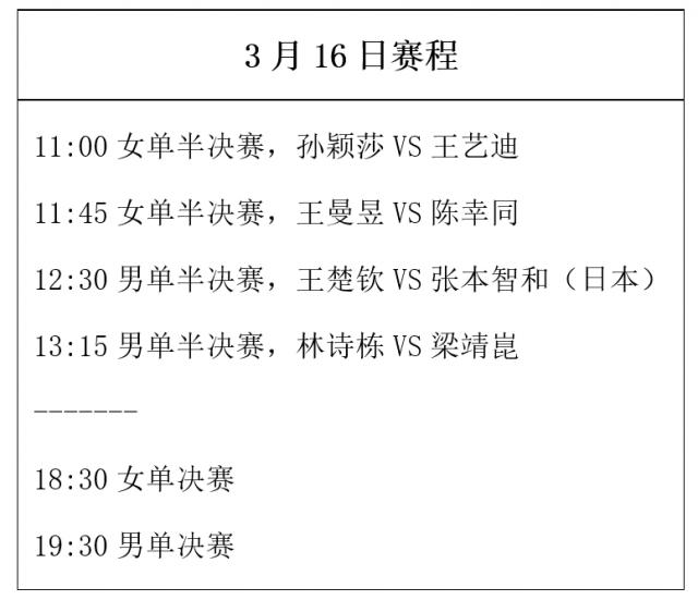 重庆冠军赛:3月16日赛程公布!两个冠军诞生,王楚钦决战张本智和