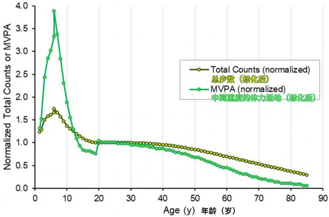 总步数不同年龄,中至重度体力运动量,20。~30 年龄还比较稳定,30岁 年过去了,就不回头了。
