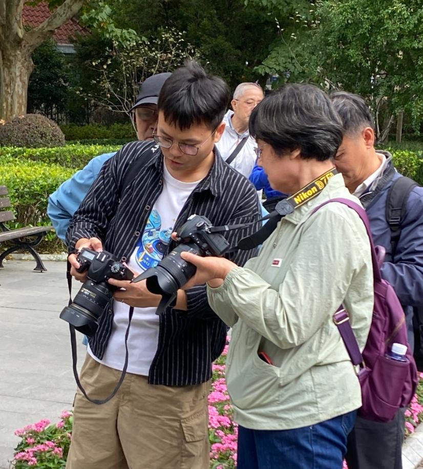 谈到教学感悟,徐洋洋说:“我很荣幸能通过湖南街道社区学校与中老年朋友分享拍摄技巧。”从相机的基本操作到人像照明的实践,学生们逐渐掌握了如何用镜头捕捉生活细节,这不仅是技术的发展,也是他们对生活的热爱和社会关怀的体现。