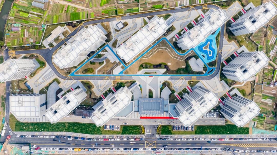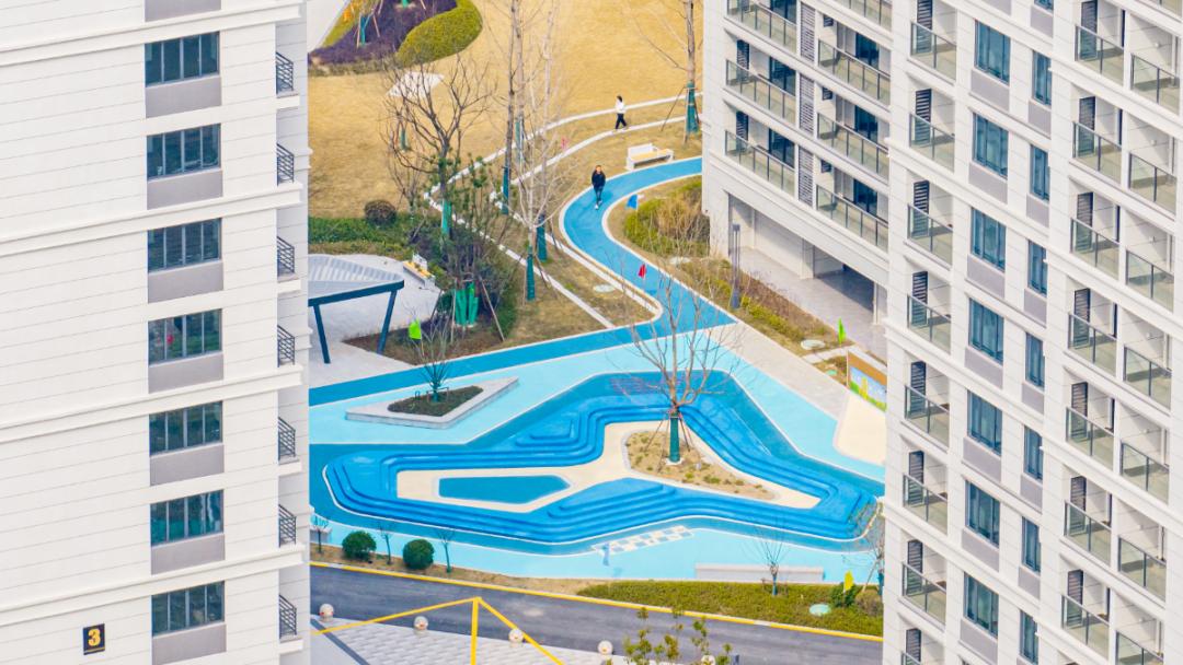 灰色简约的立面,开放的社区设计,五颜六色的跑道环绕,绿色的景观融为一体...明星宋韵里社区“长相”极高,堪称星桥街道安置房的“天花板”。