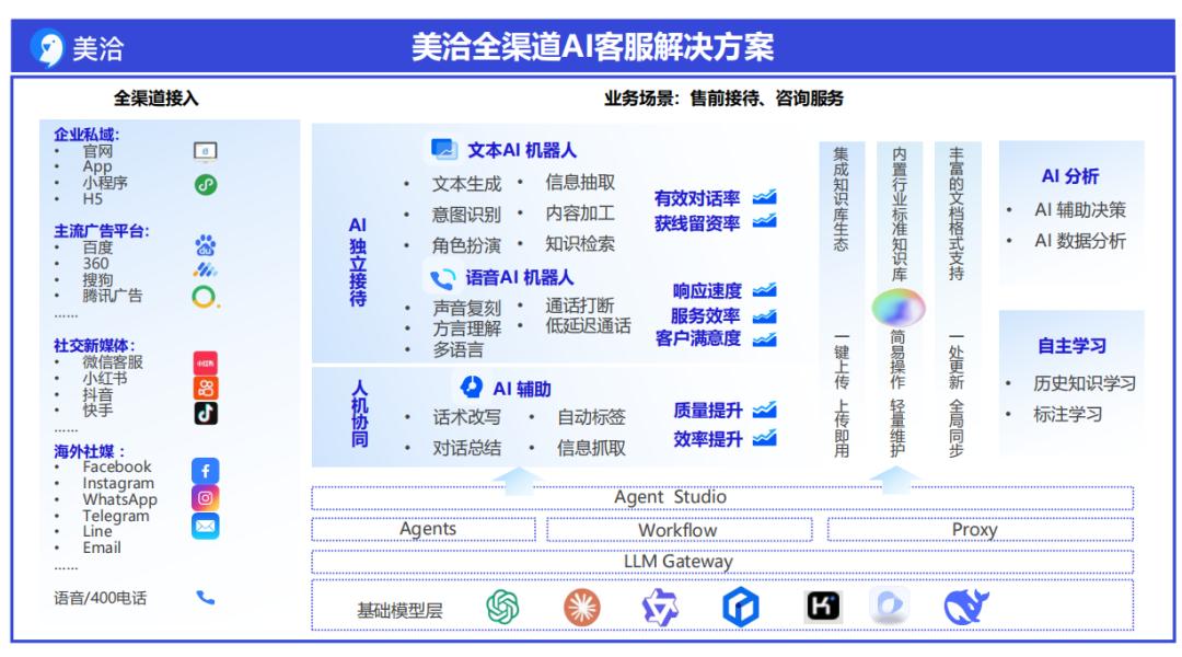 应用软件厂商将更专注于AI大模型应用场景的探索以及与现有应用的融合,未来大模型厂商将会承担绝大部分的底层算法开发优化工作,应用软件厂商则会更专注在应用场景,以及与现有AI大模型更深度的融合应用;例如美洽将大模型融入全渠道客服解决方案,并发布大模型客服机器人,大幅提升了产品性能,提高了终端用户的接受程度;
