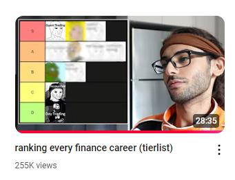 � � 开玩笑就是开玩笑,但是金融行业找工作确实有鄙视链。油管知识区大 V Coding Jesus 对此进行了排名和分析。