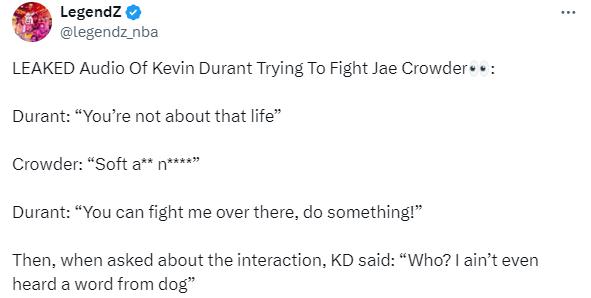 互相喷垃圾的矛盾曝光!杜兰特被骂软蛋后直接约架:你可以和我打架。